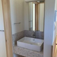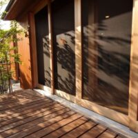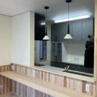 古民家のリフォームですが、和室を一部屋板の間 に替えています。 あとは後ろに収納棚をつくって壁を塗り替え、建具 を貼り替えしています。 それほど手を掛 …
