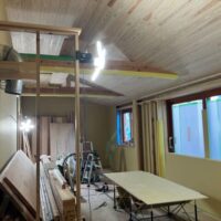 古民家のリフォームですが、和室を一部屋板の間 に替えています。 あとは後ろに収納棚をつくって壁を塗り替え、建具 を貼り替えしています。 それほど手を掛 …