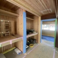 大工工事が終わって内装仕上げにかかっています。 壁や天井の仕上げと言えばほとんどがクロス仕上げですが、 当社はビニールクロスはほぼ使いま …