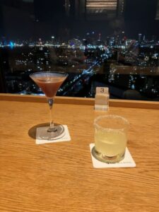 全国大会の夜はホテルの最上階でカクテルを飲んで夜景を