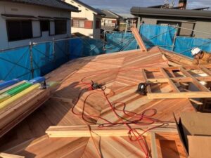 屋根の板はほとんどの工務店が合板、針葉樹を使っている