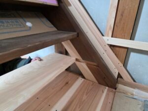 普通は階段の段板はただの大入れですが、蹴込板がないので