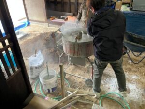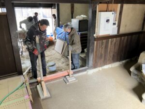 本来の三和土は土、消石灰、にがりの三種類を混ぜて施工します。