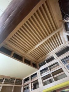 吹抜けにスノコ状の床を設けたものです。
