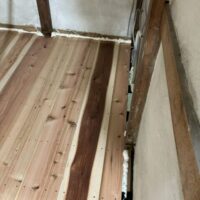 改修工事が終わって今日は美装屋さんが作業を していました。 杉の床板を貼っていますが腰壁が新建材になって います。 当社ではあまりこのよ …