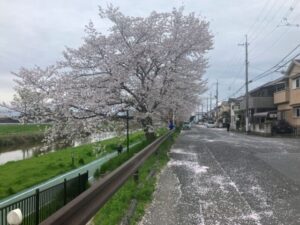 事務所の前の桜並木はすでに桜吹雪の状態です。